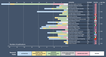 翻译:机器人辅助外科手术领域预计将在未来十年大幅增长,因为出现了一系列新的机器人装置,以满足不同专业的临床需求未得到满足。一个充满活力的外科机器人研究界对于构思这种新系统以及开发和培训工程师和科学家将其转化为实践至关重要。 达芬奇研究工具包(dVRK)是一个学术和行业协作努力,目的是将退役的达芬奇外科手术系统(直觉外科公司,美国加利福尼亚州)重新用作手术机器人研究平台,这是解决新研究团体进入外科机器人研究团体的障碍的关键举措。在本论文中,我们广泛审查了过去10年来由德VRK推动的出版物。我们将研究工作分为不同类别,并概述了机器人界维持并发扬这一举措的一些重大挑战和需求。