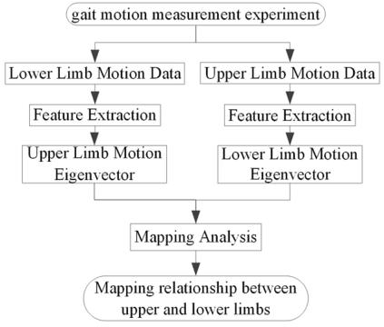 In recent years, the research of rehabilitation robot technology has become a hotspot in the field of rehabilitation medicine engineering and robotics. To assist active rehabilitation in patients with unilateral lower extremity injury, we propose a new self-service rehabilitation training method to control the injured lower extremity through its contralateral healthy upper limbs. Firstly, the movement data of upper limbs and lower limbs of healthy people in normal walking state are obtained by gait measurement experiment. Secondly, the eigenvectors of upper limb and lower limb movements in a single movement cycle are extracted respectively. Thirdly, the linear mapping relationship between the upper limbs movement and the lower limbs movement is identified using the least squares method. Finally, the simulation experiment of self-service rehabilitation training is implemented on MATLAB/Simulink. The results indicate that the identified linear mapping model can achieve good accuracy and adaptability. The self-service rehabilitation training method is effective for helping patients with unilateral limb injury to make rehabilitation training on themselves.