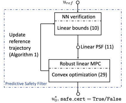 With the increase in data availability, it has been widely demonstrated that neural networks (NN) can capture complex system dynamics precisely in a data-driven manner. However, the architectural complexity and nonlinearity of the NNs make it challenging to synthesize a provably safe controller. In this work, we propose a novel safety filter that relies on convex optimization to ensure safety for a NN system, subject to additive disturbances that are capable of capturing modeling errors. Our approach leverages tools from NN verification to over-approximate NN dynamics with a set of linear bounds, followed by an application of robust linear MPC to search for controllers that can guarantee robust constraint satisfaction. We demonstrate the efficacy of the proposed framework numerically on a nonlinear pendulum system.