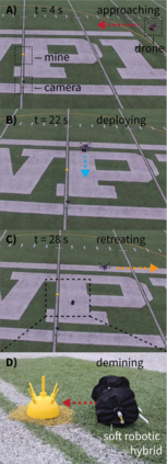 翻译:使用无人驾驶飞机的地雷排雷具有挑战性;空气释放的有效载荷通常是非智能性的有效载荷(例如水气球或爆炸物),在低空(~6米)部署这些有效载荷本来就是不准确的,因为无人驾驶飞机的飞行轨迹复杂,而且无人驾驶飞机飞行员的视觉意识有限。软机器人为空中排雷提供了独特的方法,即软机器人的强力、低成本和轻量级设计。在这里,我们建议使用非智能有效载荷,而不是非智能有效载荷。我们开发了一个完整的系统,由无人驾驶航空飞行器组成,改装成软机器人载体,包括定制的部署机制和可空气释放的轻重量(296克),不热的软混合型机器人与集成电子集成的新型真空闪电滚动系统。我们展示了一个部署周期,无人驾驶飞机将软机器人混合体从4.5米高度降下,然后机器人接近假地雷。我们开发了一个全套系统,在感兴趣的地方部署软体机器人,我们可以将软体型机器人技术从真正的实验室过渡到现实环境。
