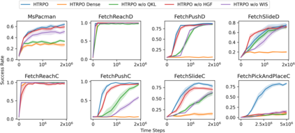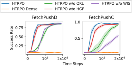 翻译:加强学习(RL) 少有回报是一个重大挑战。 我们提出 emph{ Hindsight Trust 区域政策优化 (HTRPO), 这是一种新的 RL 算法, 将极成功的TRPO 算法与 emph{hindsight} 相扩展, 以应对少有回报的挑战。 光观 指的是算法从不同目标的信息中学习的能力, 包括并非用于当前任务的信息。 HTRPO 利用了两个主要想法。 它引入了 QKL, 即 QKL, 这是对信任区域KL 差异限制的二次接近, 导致 KL 差异估计的差异减少, 并改进了政策更新的稳定性。 它还展示了 Hindsight 目标过滤(HGF) 以选择演练后视目标 。 在实验中, 我们评估 HTRPO 各种稀有的奖赏任务, 包括简单的基准、 以图像为基础的 Atari 游戏 和 模拟机器人控制 。 缩略研究表明, QKL 和 HGFPO 都有助于学习稳定性和高绩效。 。 比较结果表明, 在所有任务中, HTRPO 都 都 超越了 RTRPO 和 HGPO 。