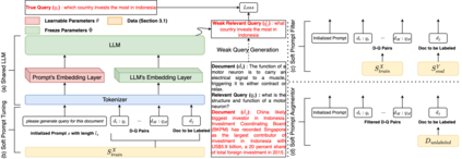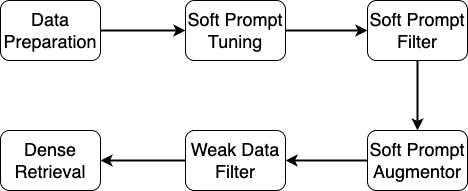 Dense retrieval (DR) converts queries and documents into dense embeddings and measures the similarity between queries and documents in vector space. One of the challenges in DR is the lack of domain-specific training data. While DR models can learn from large-scale public datasets like MS MARCO through transfer learning, evidence shows that not all DR models and domains can benefit from transfer learning equally. Recently, some researchers have resorted to large language models (LLMs) to improve the zero-shot and few-shot DR models. However, the hard prompts or human-written prompts utilized in these works cannot guarantee the good quality of generated weak queries. To tackle this, we propose soft prompt tuning for augmenting DR (SPTAR): For each task, we leverage soft prompt-tuning to optimize a task-specific soft prompt on limited ground truth data and then prompt the LLMs to tag unlabeled documents with weak queries, yielding enough weak document-query pairs to train task-specific dense retrievers. We design a filter to select high-quality example document-query pairs in the prompt to further improve the quality of weak tagged queries. To the best of our knowledge, there is no prior work utilizing soft prompt tuning to augment DR models. The experiments demonstrate that SPTAR outperforms the unsupervised baselines BM25 and the recently proposed LLMs-based augmentation method for DR.