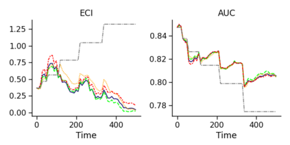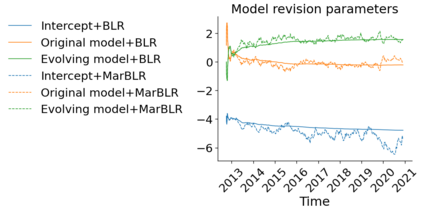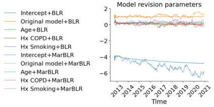 翻译:在部署临床预测模型后,随后收集的数据可用于微调其预测和适应时间变化。由于模型更新具有超升/装配风险,我们研究有性能保障的在线方法。我们引入了两个程序,以持续重新校正或修改一个基本预测模型:巴伊西亚后勤回归(BLR)和马克夫变量,明确模型分布变化(MarBLR)。我们通过模拟和真实世界研究进行经验性评估,预测COPD风险。我们得出了“Type I和II”的遗憾界限,这保证了程序不易升级/装配风险,我们研究了一个静态模型/装配风险。我们引入了两个程序,在平均损失方面,连续调整或修订一个基础预测模型:Besian后勤回归(BLR)和(a)的平均校正模型(aECI)为0.828(95%CIRRI),在BLR和MarBLR(B-LR)的RM(B- mess mess)之间,B-rassion(950.300)和0.24B(995 C(BR) 分别进行大规模修正和B.