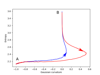翻译:随机字段模型是用于研究随机复杂系统的数学结构。 在本文中, 我们使用第一和第二种基本形式( Fisher 信息矩阵) 计算高森随机字段元件的形状操作器。 我们使用 Markov 链子 Monte Carlo 技术, 模拟这些随机字段的动态, 并计算高萨参数空间的曲线, 分析此数量在阶段转换过程中的变化 。 在模拟中, 我们观察到一个我们称之为 emph{ curvure effect} 的意外现象, 这表明当系统昆虫出现大幅增长/ 下降时, 基础参数空间发生了高度不对称的几何形变形。 这种不对称模式与歇斯氏体的出现有关, 导致动态中的时间的内在箭头。
