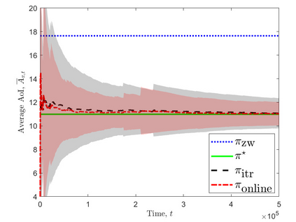 翻译:本文在取样频率限制 \ cite{sun_17_tit} 下重新审视了通过一个频道随机拖延取样和传送现状更新的问题。 我们使用信息时代来描述接收器的状态信息新鲜度。 目的是设计一个取样政策, 在无法了解延迟统计时可以将平均 AoI 最小化。 我们重新将问题描述为优化更新回报过程, 并提议基于 Robbins- Monro 算法的在线取样战略。 我们证明, 提议的算法满足了取样频率限制 。 此外, 当传输延迟被约束且分布绝对持续时, 提议的算法获得的平均 AoI 与最小的 AoI 一致, 当样本数量以美元到无限值, 概率为1 时, 我们显示最佳性差与 $\ mathcal{O ⁇ left (lnK/K\right) 的汇率发生衰减, 而提议的算法是最优化的。 模拟结果验证了我们提议的算法的性能 。