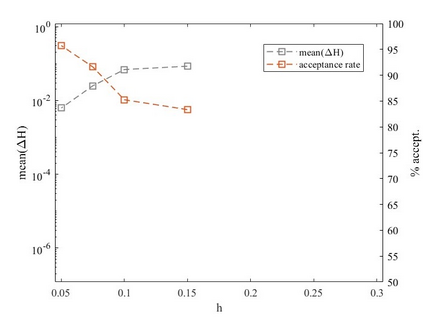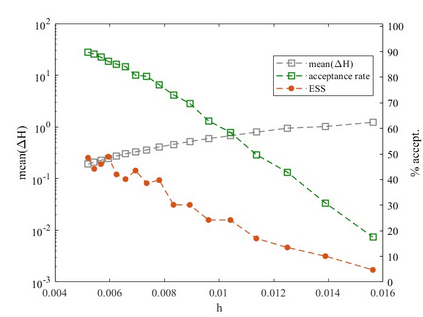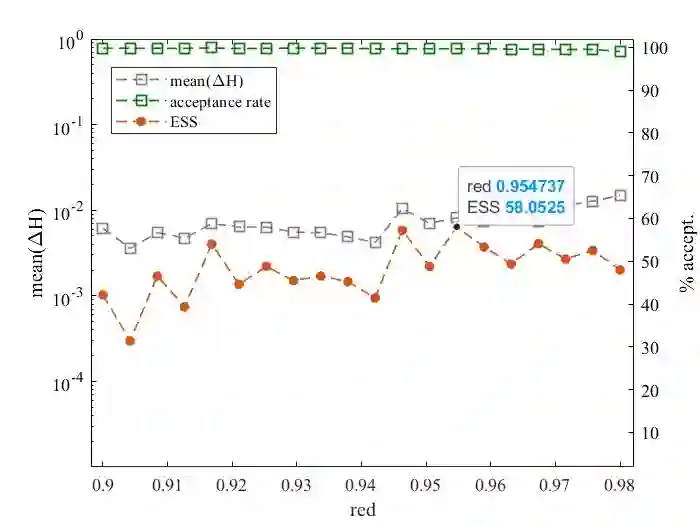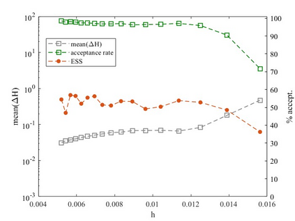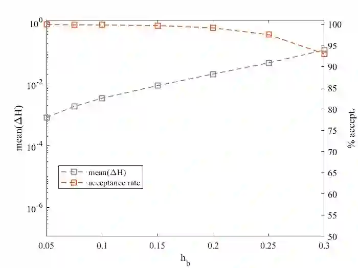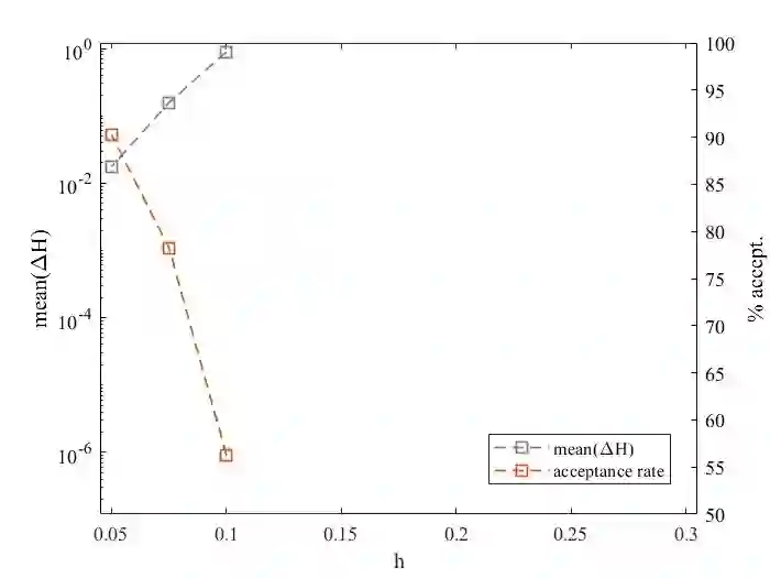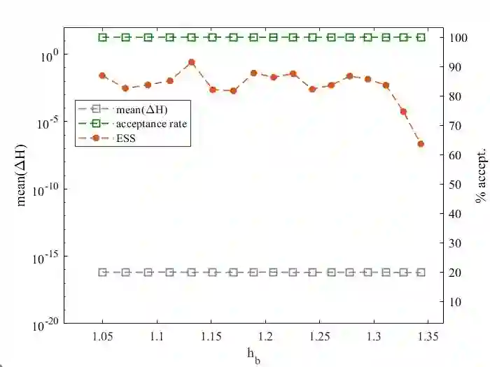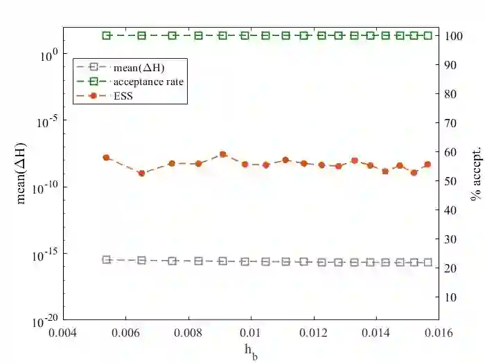 翻译:在汉密尔顿-蒙特-蒙特-卡洛(汉密尔顿-蒙特-蒙特-卡罗(HMC))方法中,汉密尔顿问题的数字集成方案是汉密尔顿问题的数字集成器,可有利地取代St'ormer-Verlet方法。然而,HMC的性能对于步数参数参数参数非常敏感;在本文件中,我们提议在单数分解程序二阶梯组中采用新方法,使用一个适当参数,使对单数和多变数高斯分布的能源错误的期望丧失;对于更一般的非高斯目标分布,建议的办法超过了本数,特别是在采用适应性选择时;我们还提供一种新的算法,通过调适量选择美元参数和分量尺寸确保HMC的高采样性性。对于最近文献中引入的类似方法,我们采用拟议的步数选择,即步数分解方法在对单数和多变数高斯分布应用时绝不拒绝样品。对于较普通的非高斯目标分布,特别是在使用适应性选择时,拟议的办法超过了本。拟议的办法的有效性首先在从文献中对某些基准示例进行测试。然后,我们将Lo-Gsurb-regisliversisal作为目标的分布作为目标分布。我们进行实验,然后考虑将目标进行试验。