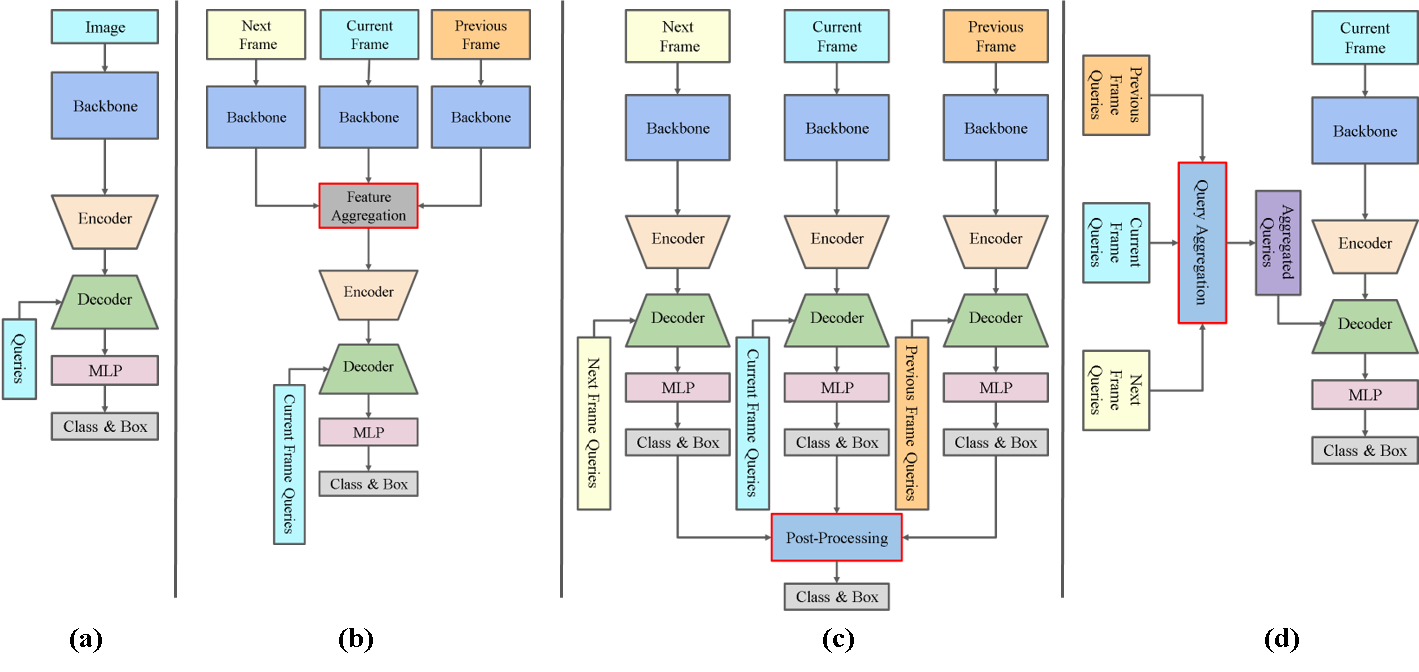 翻译:视频目标检测需要解决图像领域很少出现的特征降级情况。其中一种解决方案是利用时间信息并融合相邻帧的特征。随着基于Transformer的目标检测器在图像领域任务中获得更好的性能,最近的研究开始将这些方法扩展到视频目标检测。然而,这些现有的基于Transformer的视频目标检测器仍然遵循与经典目标检测器相同的流程,如通过聚合增强物体特征表征。在本文中,我们从不同的角度来看待视频目标检测。具体而言,我们通过聚合改进Transformer模型的查询质量。为实现此目标,我们首先提出了一个香草查询聚合模块,根据相邻帧的特征加权平均查询。然后,我们将香草模块扩展为一个更实用的版本,根据输入帧的特征生成并聚合查询。广泛的实验结果验证了我们所提出的方法的有效性:在具有挑战性的ImageNet VID基准测试中,当与我们提出的模块集成时,目前最先进的基于Transformer的目标检测器在mAP上可以提高超过2.4%并在AP50上提高4.2%。