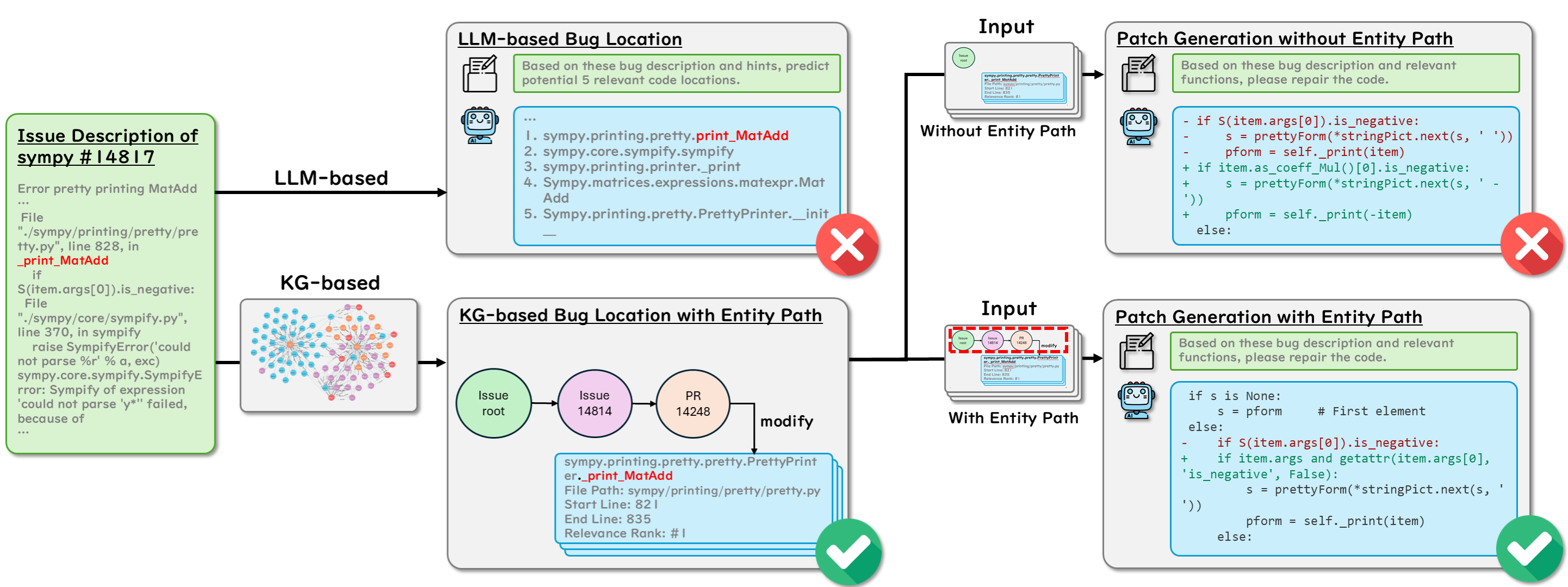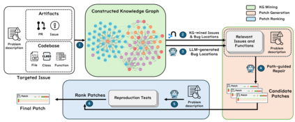 Repository-level software repair faces challenges in bridging semantic gaps between issue descriptions and code patches. Existing approaches, which mostly depend on large language models (LLMs), suffer from semantic ambiguities, limited structural context understanding, and insufficient reasoning capability. To address these limitations, we propose KGCompass with two innovations: (1) a novel repository-aware knowledge graph (KG) that accurately links repository artifacts (issues and pull requests) and codebase entities (files, classes, and functions), allowing us to effectively narrow down the vast search space to only 20 most relevant functions with accurate candidate bug locations and contextual information, and (2) a path-guided repair mechanism that leverages KG-mined entity path, tracing through which allows us to augment LLMs with relevant contextual information to generate precise patches along with their explanations. Experimental results in the SWE-Bench-Lite demonstrate that KGCompass achieves state-of-the-art repair performance (45.67%) and function-level localization accuracy (51.33%) across open-source approaches, costing only $0.20 per repair. Our analysis reveals that among successfully localized bugs, 69.7% require multi-hop traversals through the knowledge graph, without which LLM-based approaches struggle to accurately locate bugs. The knowledge graph built in KGCompass is language agnostic and can be incrementally updated, making it a practical solution for real-world development environments.
