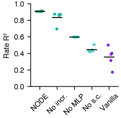 Artificial neural networks that can recover latent dynamics from recorded neural activity may provide a powerful avenue for identifying and interpreting the dynamical motifs underlying biological computation. Given that neural variance alone does not uniquely determine a latent dynamical system, interpretable architectures should prioritize accurate and low-dimensional latent dynamics. In this work, we evaluated the performance of sequential autoencoders (SAEs) in recovering latent chaotic attractors from simulated neural datasets. We found that SAEs with widely-used recurrent neural network (RNN)-based dynamics were unable to infer accurate firing rates at the true latent state dimensionality, and that larger RNNs relied upon dynamical features not present in the data. On the other hand, SAEs with neural ordinary differential equation (NODE)-based dynamics inferred accurate rates at the true latent state dimensionality, while also recovering latent trajectories and fixed point structure. Ablations reveal that this is mainly because NODEs (1) allow use of higher-capacity multi-layer perceptrons (MLPs) to model the vector field and (2) predict the derivative rather than the next state. Decoupling the capacity of the dynamics model from its latent dimensionality enables NODEs to learn the requisite low-D dynamics where RNN cells fail. Additionally, the fact that the NODE predicts derivatives imposes a useful autoregressive prior on the latent states. The suboptimal interpretability of widely-used RNN-based dynamics may motivate substitution for alternative architectures, such as NODE, that enable learning of accurate dynamics in low-dimensional latent spaces.