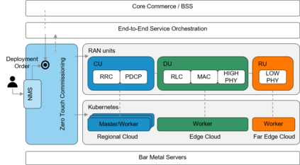 The arrival of 6G technologies shall massively increase the proliferation of on-demand and ephemeral networks. Creating and removing customized networks on the fly notably requires fully automation to guarantee commissioning-time acceleration. In this paper, we address the deployment automation of an end-to-end mobile network, with special focus on RAN units (referred to as Cloud-RAN). The Cloud-RAN automation is especially challenging due to the strong latency constraints expected in 6G as well as the required management of physical antennas. To automatically instantiate a Cloud-RAN chain, we introduce a Zero Touch Commissioning (ZTC) model which performs resource discovery while looking for both antennas and computing capacity as near as possible to the targeted coverage zone. We validate the ZTC model by a testbed which deploys, configures and starts the network service without human intervention while using Kubernetes-based infrastructures as well as open-source RAN and core elements implementing the mobile network functions.