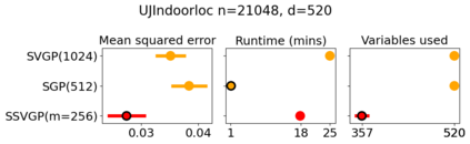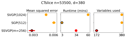 翻译:Gausian 进程( GPs) 的变量选择通常采用“ 自动关联度确定” 内核的反长尺度, 而在高维数据集中, 这种方法可能是不可靠的。 更概率原则性的替代办法是使用钉钉和板的前缀, 并推出一个包含变量的外在概率。 但是, Gosian 中的现有实施对于在高维和大一美元数据集运行,或者对于大多数内核来说都是难处理的。 因此, 我们开发了一个快速和可扩缩的“ 自动关联度确定” 内核螺旋内核的变异性算法, 这个方法可以随任意的不同内核而可移动。 我们提高我们的算法能力, 以平均高于超光度光度计的方式适应Bayesian 模型的相关变量的宽度, 并且使用零温度后、 抛出和近邻的微型燃烧。 在实验中, 我们的方法始终优于 Vanilla 和 稀薄的变异性GPs, 同时保留类似的运行时间( 即使当 $M= 10) 和 快速运行到 和 10 MS 。