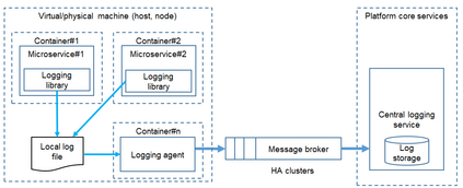 Objective. Service-oriented architecture increases technical abilities for attacker to move laterally and maintain multiple pivot points inside of compromised environment. Microservice-based infrastructure brings more challenges for security architect related to internal event visibility and monitoring. Properly implemented logging and audit approach is a baseline for security operations and incident management. The aim of this study is to provide helpful resource to application and product security architects, software and operation engineers on existing architecture patterns to implement trustworthy logging and audit process in microservice-based environments. Method. In this paper, we conduct information security threats modeling and a systematic review of major electronic databases and libraries, security standards and presentations at the major security conferences as well as architecture whitepapers of industry vendors with relevant products. Results and practical relevance. In this work based on research papers and major security conferences presentations analysis, we identified industry best practices in logging audit patterns and its applicability depending on environment characteristic. We provided threat modeling for typical architecture pattern of logging system and identified 8 information security threats. We provided security threat mitigation and as a result of 11 high-level security requirements for audit logging system were identified. High-level security requirements can be used by application security architect in order to secure their products.