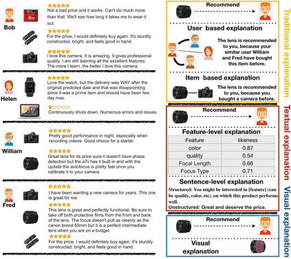 翻译:可解释的建议试图发展不仅产生高质量建议而且产生直观解释的模型。解释可以是事后的,也可以是直接来自可解释的模型(在某些情况下也称为可解释或透明模型)。可解释的建议试图解决为什么这样的问题:通过向用户或系统设计者提供解释,它帮助人类了解某些项目为什么是由算法推荐的,因为人类可以是用户或系统设计者。可解释的建议有助于改进建议系统的透明度、说服性、有效性、可信赖性和满意度。在本调查中,我们审查的是2019年年或之前可解释的建议。我们首先强调建议系统研究中可解释的建议的立场,将建议问题分为5W,即哪些、哪些、哪些、哪些和为什么。我们随后对可解释的建议进行一项全面的调查,说明三个方面:(1) 我们提供了一个可解释的建议按时间顺序排列的研究时间表,包括早期的用户研究方法和较近期基于模型的方法。我们提供了一种二维的分类方法,将现有的可解释性建议分类为可解释性研究方式,一个层面是用建议解释,用一个方面来解释,我们用建议从一个方面来解释,将建议从一个方面解释,用一个方面来解释,我们用信息来源来解释。