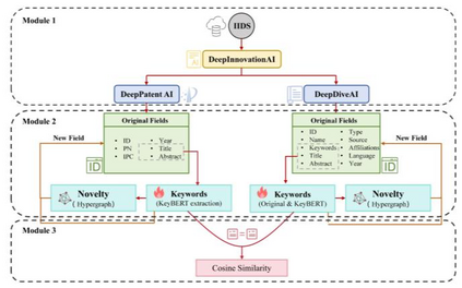 In the rapidly evolving field of artificial intelligence (AI), mapping innovation patterns and understanding effective technology transfer from research to applications are essential for economic growth. However, existing data infrastructures suffer from fragmentation, incomplete coverage, and insufficient evaluative capacity. Here, we present DeepInnovationAI, a comprehensive global dataset containing three structured files. DeepPatentAI.csv: Contains 2,356,204 patent records with 8 field-specific attributes. DeepDiveAI.csv: Encompasses 3,511,929 academic publications with 13 metadata fields. These two datasets leverage large language models, multilingual text analysis and dual-layer BERT classifiers to accurately identify AI-related content, while utilizing hypergraph analysis to create robust innovation metrics. Additionally, DeepCosineAI.csv: By applying semantic vector proximity analysis, this file presents approximately one hundred million calculated paper-patent similarity pairs to enhance understanding of how theoretical advancements translate into commercial technologies. DeepInnovationAI enables researchers, policymakers, and industry leaders to anticipate trends and identify collaboration opportunities. With extensive temporal and geographical scope, it supports detailed analysis of technological development patterns and international competition dynamics, establishing a foundation for modeling AI innovation and technology transfer processes.