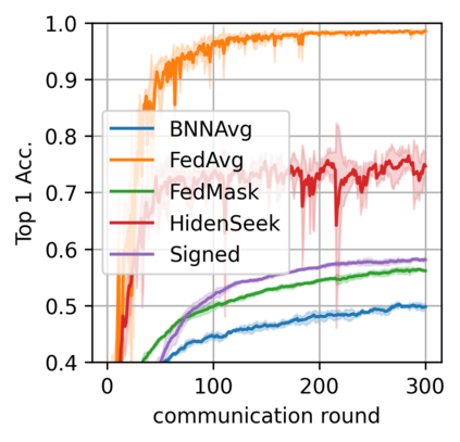 翻译:联邦学习联盟通过向中央服务器发送本地模型更新来减轻分布式学习的隐私风险。然而,它面临诸多挑战,包括客户数据集的统计多样性和客户设备的资源限制,这严重影响了培训业绩和用户经验。先前的工程通过将个人化与模型压缩计划(包括量化和修剪)相结合,解决了这些挑战。然而,修剪取决于数据,因此必须在客户方面进行,这需要相当大的计算成本。此外,修剪通常只培训一个二进制超模xxxx $@in 0.0,1 $1美元,这大大限制了模型能力,但却没有计算效益。因此,培训需要很高的计算成本和很长的时间来汇合,而模型的性能却无收效。在这项工作中,我们建议HideNseek在初始化时使用一发数据-Annonocriprun,以获得一个基于重量合成特征的子网络。每个客户然后优化一个符号超模xxxxx $_1,+1,+1美元xxxxxxxxxxxxxxxxxxxxxxxxxxxxxxxxxxxxxxxxxxxxxxxxxxxxxxxxxxxxxxxxxxxxxxxxxxxxxxxxxxxxxxxxxxxxxxxxxxxxxxxxxxxxxxxxxxxxxxxxxxxxxxxxxxxxxxxxxxxxxxxxxxxxxxxxxxxxxxxxxxxxxxxxxxxxxxxxxxxxxxxxxxxxxxxxxxxxxxxxxxxxxxxxxxxxxxxxxxxxxxxxxxxxxxxxxxxxxxxxxxxxxxxxxxxxxxxxxxxxxxxxxxxxxxxxxxxxxxxxxxxxxxx