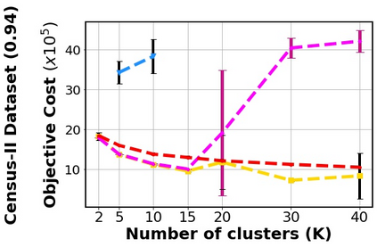 翻译:我们审视了公平分组问题,首先由Chierichetti等人提出,公平分组要求每个受保护的属性在每个组群中拥有大致平等的代表权,即平衡财产。公平分组的现有解决方案要么无法伸缩,要么无法在组合目标和公平之间实现最佳的权衡。在本文中,我们提出了一个新的公平概念,我们称之为美元公平,严格地概括平衡财产,并能够实现微调效率相对于公平权衡。此外,我们展示了简单贪婪的圆柱式算法能够有效地实现这一平衡。在多价值保护属性的更普遍环境下,我们严格分析了我们算法的理论属性。我们的实验结果表明,拟议解决方案超越了所有最先进的算法,甚至对大量组群也非常有效。