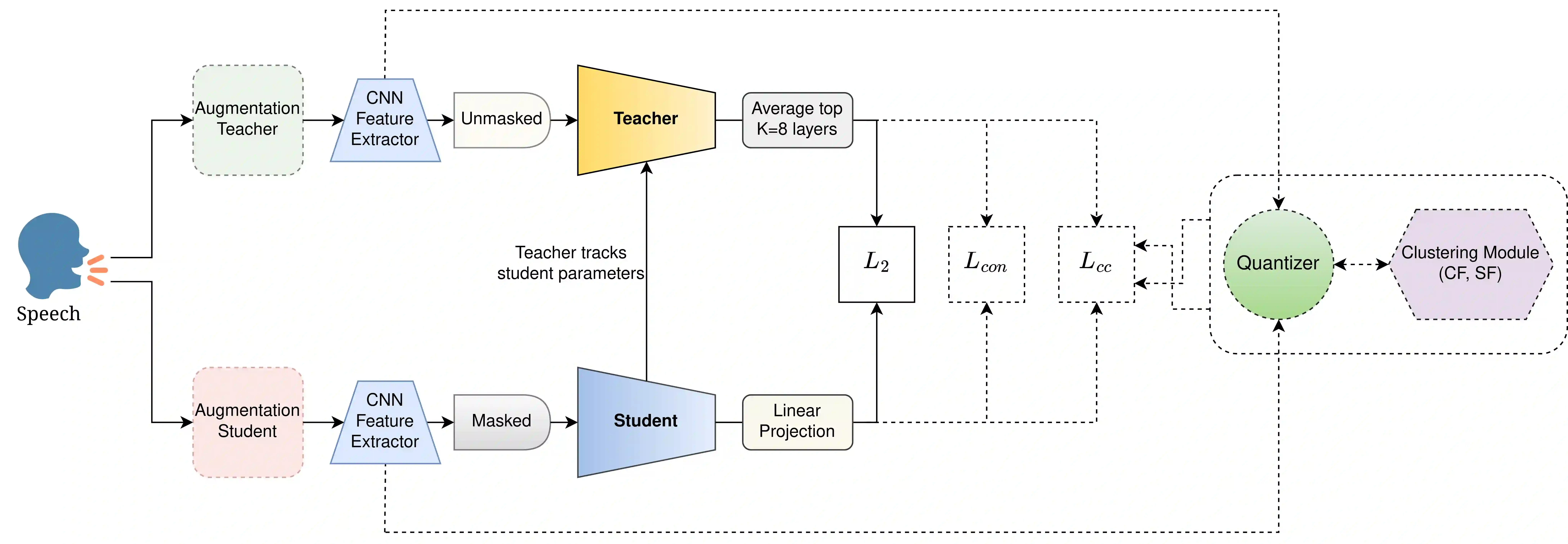 翻译:在本文中,我们提出一个新的“自我监督学习”算法,名为“数据2vec-aqc”,用于从未贴标签的语音数据中学习语音演示。我们的目标是在未贴标签和标签的数据都有限的领域改进语音的 SSL 。根据最近引入的数据2vec,我们为数据2vec 框架引入了额外的模块,以利用数据增强、量化的表达和集成的好处。这些模块之间的相互作用有助于解决交叉争议损失,作为另一个自我监督的目标。数据2vec-aqc 实现了对LibriSpeech测试-peech测试-其他系统的现有最新数据2vec系统的14.1%和20.9%相对WER的改进,而没有使用任何语言模型。在对切换板数据进行微调时,我们提议的模型也实现了比基线数据2vec的17.8%的相对WER改进。
