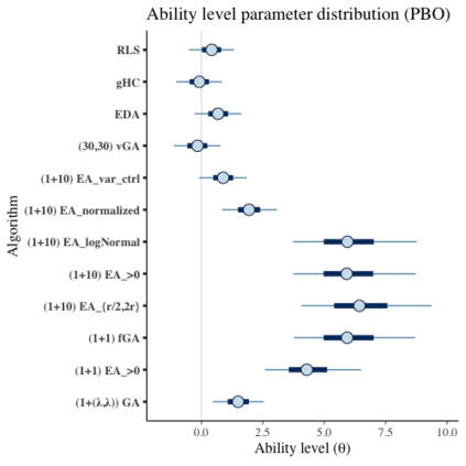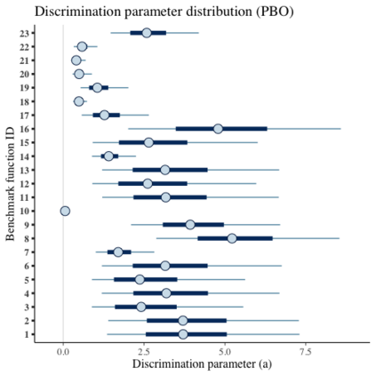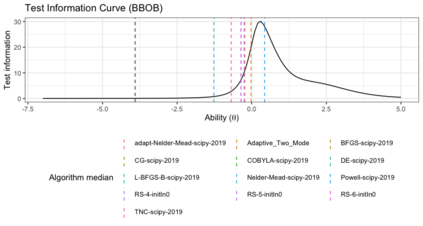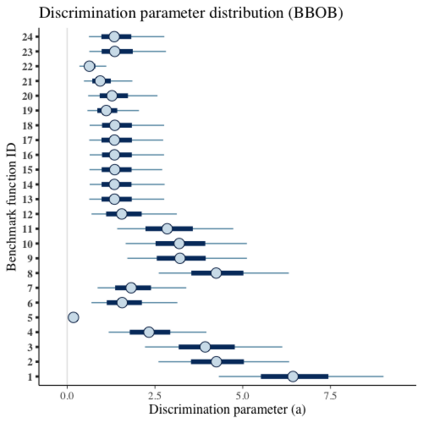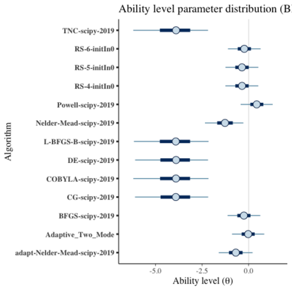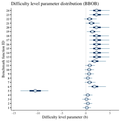 翻译:在比较黑箱优化算法时,广泛使用基准套件,即一套基准功能的集合。多年来,研究已经为基准套件确定了许多理想的品质,例如不同的地形学、不同的困难、可缩放性、真实世界问题的代表性等等。然而,虽然地形特征受以往研究的制约,但没有一项研究在统计上评估基准功能的困难程度、它们如何区别优化算法以及算法比较基准套件的适宜性。在本文中,我们提议使用一个项目响应理论(IRT)模型,即巴伊西亚两参数的逻辑逻辑模型,用于多次尝试,以便从统计角度评估这些方面的基准,与算法的经验成功率有关。但是,我们可以评估每个基准的难度,如何区别不同的算法,算法的能力分,以及基准套件在估算能力分数中增加了多少信息。我们用这个模型在两个广为人知的基准套件中,Bayesia-Box 基准(BBBOOO) 最易优化和BOBBA 最难度标准(BO Booim 最难程度) 和BO BO 最难的升级标准。我们用了BOBOBBA 最难度标准 最难的高级标准。我们找到BOBOBBBBBBBBBBBB 最难的高级标准 最难的高级标准的高级标准级标准级标准值。