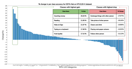 翻译:缺乏精细的关节(毛结、手手指)是状态最先进的骨骼行动识别模型的一个基本性能瓶颈。 尽管存在这种瓶颈,社区的努力似乎只投入到新结构中。为了具体解决这一瓶颈问题,我们引入了两个基于人类行动新构成的数据集:NTU60-X和NTU120-X。 我们的数据集扩展了现有最大的行动识别数据集NTU-RGBD。 除了NTU-RGBD、NTU60-X和NTU120-X中每个骨骼的25个机构连接外,还包括手指和面部连接,使得骨骼代表更加富有。我们适当修改艺术状态的方法,以便能够利用引入的数据集进行培训。我们的结果表明NTU-X数据集在克服上述瓶颈和改善总体和以往表现最差的行动类别方面的效力。