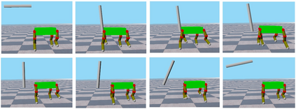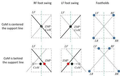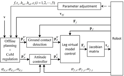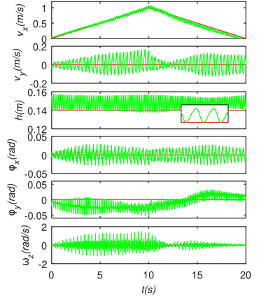 翻译:展示了将离线轨迹规划与实时平衡控制相结合的飞行轨迹直觉控制方法。在垂直方向运行动物的动作特征是使用弹簧-负旋转弹道模型(SLIP)分析的,并计划了机器人的脚轨线,这样机器人可以运行与能够垂直飞行的动物相似,这符合树干给定的高度和速度。为了提高运行的稳健性,提议了一个基于脚加速调整的姿势控制方法。现在有一种新的基于运动的COM观测方法和COM调控方法,以加强移动的稳定性。为了减少机器人与环境发生相互作用时的撞击力,在控制脚轨线时使用了虚拟模型控制方法,以实现积极合规。通过为虚拟模型选择适当的参数,虚拟模型的振动动作和辅助脚的规划动作是同步的,以避免虚拟模型的振动动作与机器人动作有关的大规模扰动。使用四振动机体运动的模拟和实验,每个机器人的机身控制速度报告,每个机器人的四振动控制速度。