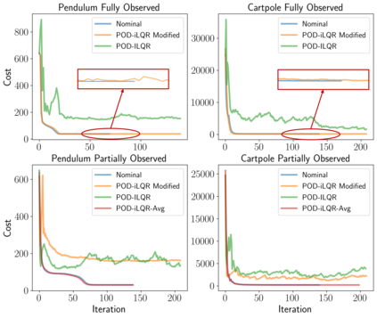 This paper studies the learning-to-control problem under process and sensing uncertainties for dynamical systems. In our previous work, we developed a data-based generalization of the iterative linear quadratic regulator (iLQR) to design closed-loop feedback control for high-dimensional dynamical systems with partial state observation. This method required perfect simulation rollouts which are not realistic in real applications. In this work, we briefly introduce this method and explore its efficacy under process and sensing uncertainties. We prove that in the fully observed case where the system dynamics are corrupted with noise but the measurements are perfect, it still converges to the global minimum. However, in the partially observed case where both process and measurement noise exist in the system, this method converges to a biased "optimum". Thus multiple rollouts need to be averaged to retrieve the true optimum. The analysis is verified in two nonlinear robotic examples simulated in the above cases.