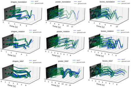 翻译:我们提出了在事件相机中连续时间跟踪特征的新方法。 为此, 我们根据空间时的估计轨迹对事件进行匹配, 这样图像平面上的投影将产生最大亮度的事件补丁图像。 轨迹由美元=th} 命令B- spline 参数化, 连续为$( n-2)\\\\\\\\\th} 衍生物。 与先前的工作相比, 我们以滑动窗口的方式优化曲线参数。 在公共数据集中, 我们实验性地确认, 拟议的滑动窗口 B- spline 优化导致比以往工作更长、 更准确的功能轨迹 。