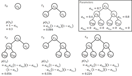翻译:完全根植树木的递归和等级结构适用于代表数据压缩、图像处理和机器学习等各个领域的统计模型。 在多数情况下,完全根植的树不是随机的变量;因此,为了避免过大而选择模型会产生问题。 解决这个问题的方法是假定在完全根植的树木上事先分配。 这使得根据贝耶斯决定理论可以避免过度配制。 例如,通过给一个复杂模型分配一个低的先前概率, 最高后世估计器可以防止过度配制。 此外, 通过平均使用其后世加权的所有模型可以避免过度配制。 在本文中,我们提议在一组完全根植树上进行概率分布。 它的参数表示方式、 期望 和 后世分布 等循环函数, 适合于计算我们分布的属性。 虽然在以前的研究中已经提出了这种分配方法, 但是它们只适用于具体的应用。 因此, 我们提取其数学基本组成部分, 并产生新的通用方法来计算预期值、 后世分布等。