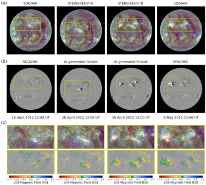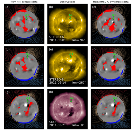 翻译:在了解日冕现象的性质方面,太阳太阳磁场发挥着关键作用。全球日冕磁场通常是从光球场外推的,其远端数据大约在两周前在前侧拍摄。我们第一次利用近实时时间基础,利用前侧和AI产生的远端磁场,构建了全球磁场外推法。我们从太阳地面关系观测台(STEREO)的3个频道远端观测中生成了远端磁图。全球日冕磁场通常从太阳动力观测站(STEREO)的1美元头(A)和1美元Behind(B)的3个频道远端观测中生成了远端磁场磁场图。同步地图显示的不仅是ARs的外观,而且在太阳动态动态动态观测台(SDODO)的深度观测中也消失了很多。对于前侧的太阳表面空间观测台而言,我们使用的磁场分布分布与实际数据同步,我们用这些常规的模型显示的磁场结果比以前更一致。