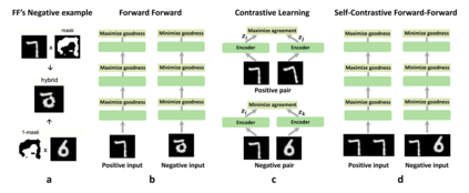 Agents that operate autonomously benefit from lifelong learning capabilities. However, compatible training algorithms must comply with the decentralized nature of these systems, which imposes constraints on both the parameter counts and the computational resources. The Forward-Forward (FF) algorithm is one of these. FF relies only on feedforward operations, the same used for inference, for optimizing layer-wise objectives. This purely forward approach eliminates the need for transpose operations required in traditional backpropagation. Despite its potential, FF has failed to reach state-of-the-art performance on most standard benchmark tasks, in part due to unreliable negative data generation methods for unsupervised learning. In this work, we propose the Self-Contrastive Forward-Forward (SCFF) algorithm, a competitive training method aimed at closing this performance gap. Inspired by standard self-supervised contrastive learning for vision tasks, SCFF generates positive and negative inputs applicable across various datasets. The method demonstrates superior performance compared to existing unsupervised local learning algorithms on several benchmark datasets, including MNIST, CIFAR-10, STL-10, and Tiny ImageNet. We extend FF's application to training recurrent neural networks, expanding its utility to sequential data tasks. These findings pave the way for high-accuracy, real-time learning on resource-constrained edge devices.