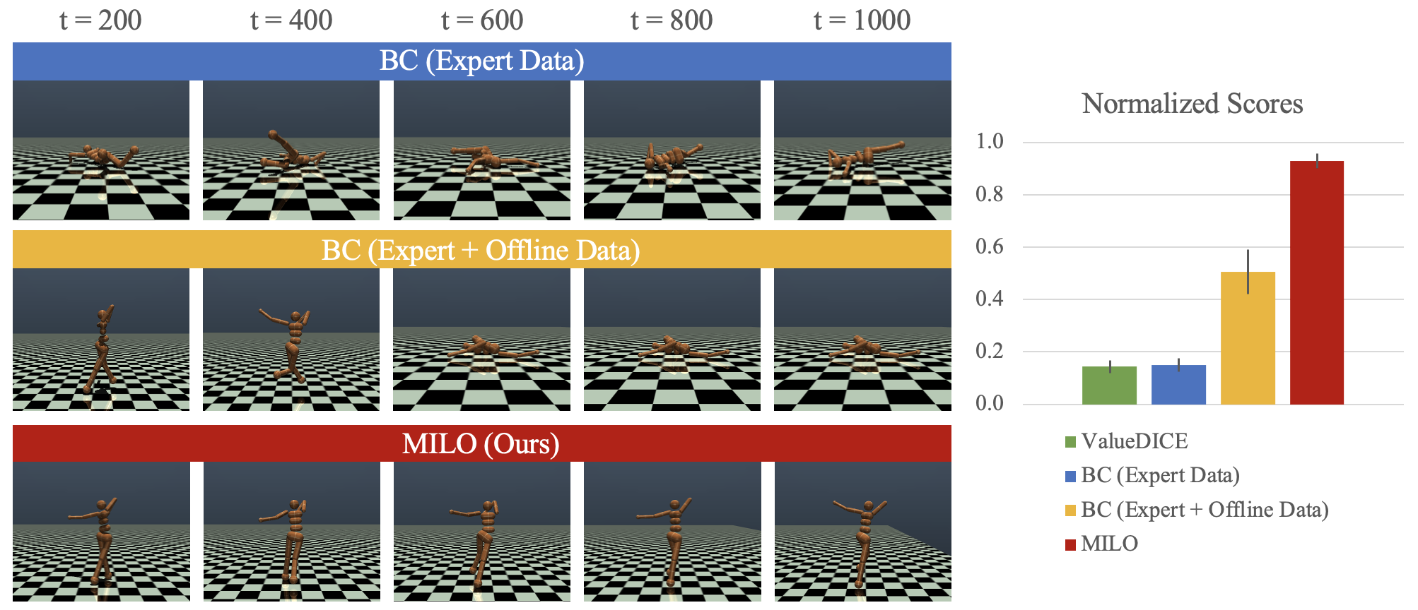 翻译:本文研究离线模拟学习(IL), 代理商在不增加在线环境互动的情况下学习模仿专家演示人, 而不用额外的在线环境互动。 相反, 向学习人展示了一个固定的离线演示数据组, 显示国家- 行动- 下一步国家过渡三倍的固定离线数据集, 这些数据来自可能不太熟练的行为政策。 我们引入了基于模型的离线数据( MILO ) : 一个算法框架, 利用静态数据集在理论和实践上有效解决离线 IL 问题。 在理论上和实践中, 实际实施我们的方法可以减轻 MuJoco 持续控制任务基准上的共变换。 我们证明,行为政策的表现比专家低一半, 只要行为政策的数据能够充分覆盖专家的国家- 行动轨迹( 无需覆盖整个州- 行动空间的全球范围), MILILO 就可以肯定地解决IL 数据中的共变换问题。 补充我们的理论结果, 我们还证明, 实际实施我们的方法可以减轻 MuJoco 持续控制任务上的共变换。 我们证明, 行为政策如果其表现低于专家的一半,, MILILILO仍然成功地模仿/ BBC 以极低的源码/ 标准。