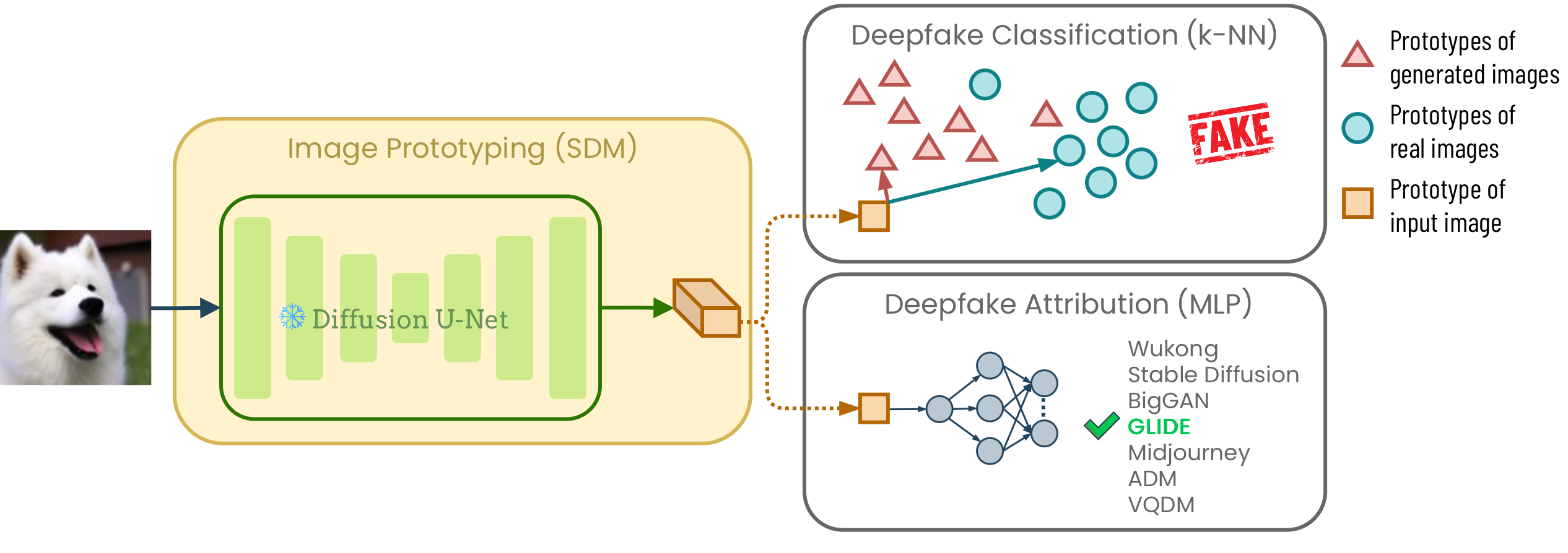 The rapid progress of generative diffusion models has enabled the creation of synthetic images that are increasingly difficult to distinguish from real ones, raising concerns about authenticity, copyright, and misinformation. Existing supervised detectors often struggle to generalize across unseen generators, requiring extensive labeled data and frequent retraining. We introduce FRIDA (Fake-image Recognition and source Identification via Diffusion-features Analysis), a lightweight framework that leverages internal activations from a pre-trained diffusion model for deepfake detection and source generator attribution. A k-nearest-neighbor classifier applied to diffusion features achieves state-of-the-art cross-generator performance without fine-tuning, while a compact neural model enables accurate source attribution. These results show that diffusion representations inherently encode generator-specific patterns, providing a simple and interpretable foundation for synthetic image forensics.