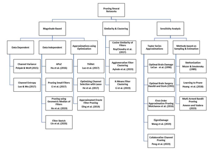 翻译:本文介绍了对深神经网络运行方法的调查,首先根据所采用的基本方法对150多项研究进行分类,然后侧重于三类:使用基于规模的运行方法,利用集群确定冗余的方法,以及使用敏感性分析评估裁剪效果的方法,这些类别中的一些影响关键研究的介绍强调了基本方法和取得的成果。大多数研究显示文献中传播的结果,这些结果随着新结构、算法和数据集的开发而随着时间的推移而发展,使得不同研究的比较变得困难。因此,本文件为社区提供了一个资源,可用于快速比较关于各种数据集的多种不同方法的结果,以及一系列结构,包括AlexNet、ResNet、DenseNet和VGG。通过比较关于图像网络和ResNet56和VGG16的PRONet50和ResNet56和VGG10数据公布的结果,以揭示哪些方法在保持准确性并实现良好压缩率方面效果良好。文件的结论是,确定了未来研究的一些有希望的方向。