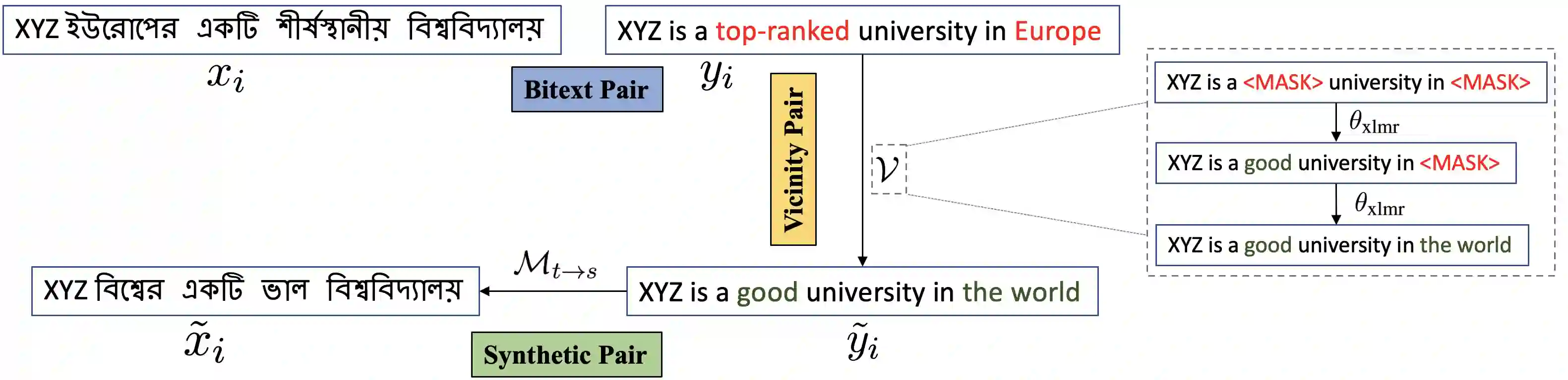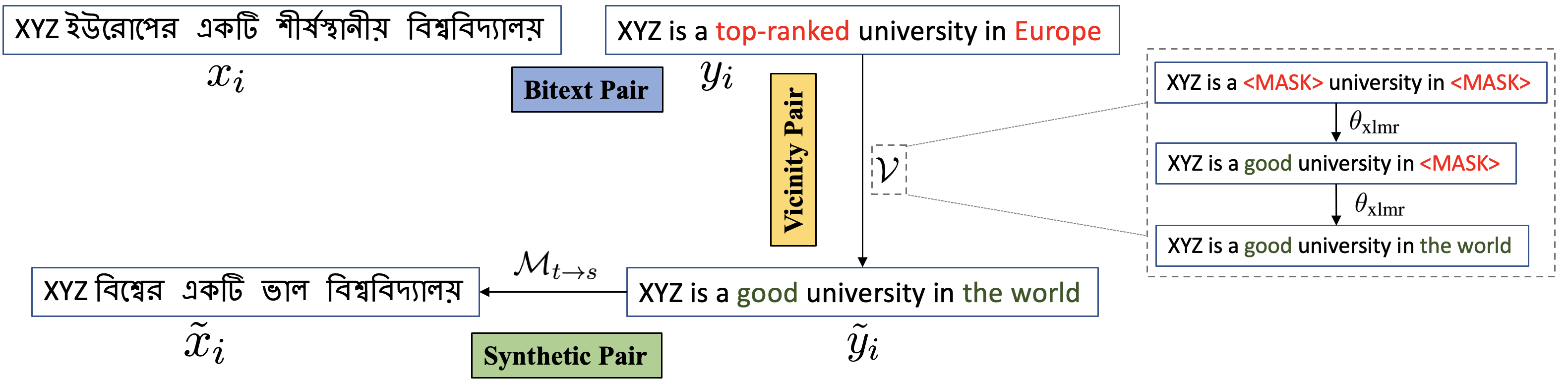 翻译:神经机器翻译(NMT)能否成功,主要取决于能否获得大量培训分数。由于在低资源语言配对中缺乏如此庞大的连体,NMT系统往往表现不佳。额外的单语数据往往有帮助,但获得这些数据的费用可能相当昂贵,特别是对低资源语言而言。此外,比特(培训/测试)和单语数据之间的域错配可能会降低性能。为了缓解这些问题,我们提议AUGVIC,这是一个为低资源NMT开发比特样的新的数据增强框架,它利用了给定比特的比特样本,而没有明确使用任何额外的单语数据。NMT系统可以将内部的比特数据多样化,并具有精细的控制。通过对四对包含不同领域数据的低资源语言配对的广泛实验,我们已经表明,我们的方法可以与使用多语言单语数据的传统回译方法相比。当我们把从AUGVIC产生的合成平行数据与超单语数据组合结合起来时,我们取得了进一步的改进。我们表明,AUGVIC帮助加深了对不同语言框架的深度分析。