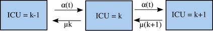 Intensive care occupancy is an important indicator of health care stress that has been used to guide policy decisions during the COVID-19 pandemic. Toward reliable decision-making as a pandemic progresses, estimating the rates at which patients are admitted to and discharged from hospitals and intensive care units (ICUs) is crucial. Since individual-level hospital data are rarely available to modelers in each geographic locality of interest, it is important to develop tools for inferring these rates from publicly available daily numbers of hospital and ICU beds occupied. We develop such an estimation approach based on an immigration-death process that models fluctuations of ICU occupancy. Our flexible framework allows for immigration and death rates to depend on covariates, such as hospital bed occupancy and daily SARS-CoV-2 test positivity rate, which may drive changes in hospital ICU operations. We demonstrate via simulation studies that the proposed method performs well on noisy time series data and apply our statistical framework to hospitalization data from the University of California, Irvine (UCI) Health and Orange County, California. By introducing a likelihood-based framework where immigration and death rates can vary with covariates, we find, through rigorous model selection, that hospitalization and positivity rates are crucial covariates for modeling ICU stay dynamics and validate our per-patient ICU stay estimates using anonymized patient-level UCI hospital data.