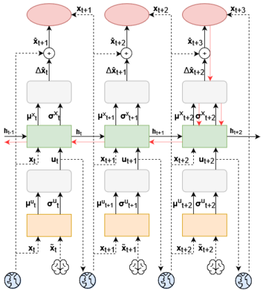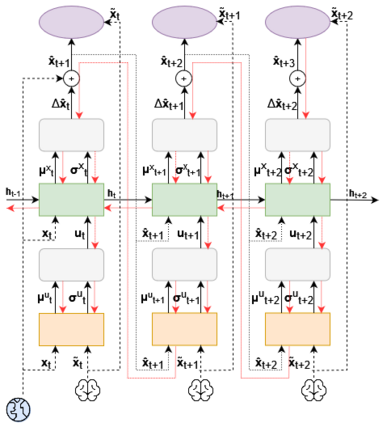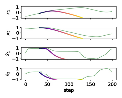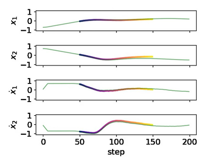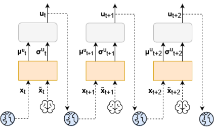 翻译:动物的四肢有完美的反向模型(例如,肌肉收缩必须适用于每一关节,才能到达空间的特定位置)是值得怀疑的。 然而,在机器人控制中,将手臂的末效器移动到目标位置或沿着目标轨道需要准确的前向和反向模型。 我们在这里通过从互动中学习过渡(前向)模型来显示,我们可以通过它来推动分解政策的学习。 因此,我们重新审视与深度主动推断框架有关的政策优化,并描述一个模块式神经网络结构,该结构同时从预测错误和产生合适的连续控制命令以达到理想参考位置的随机政策中学习系统动态。我们通过将模型与线形四极调节器的基准进行比较来评估模型,并最后采取更多步骤,以转向人型运动控制。