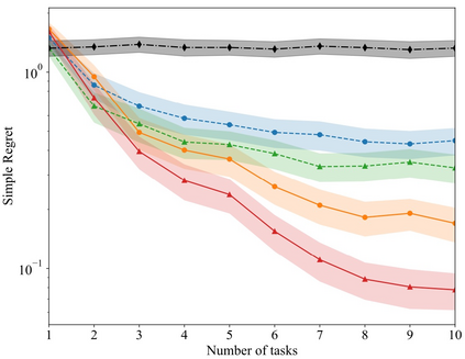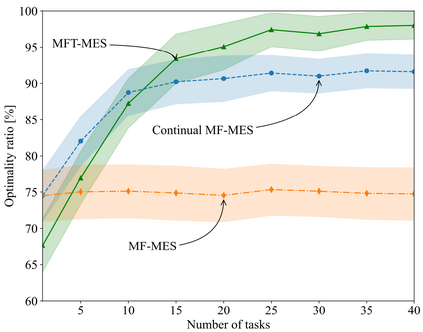 In many applications, ranging from logistics to engineering, a designer is faced with a sequence of optimization tasks for which the objectives are in the form of black-box functions that are costly to evaluate. For example, the designer may need to tune the hyperparameters of neural network models for different learning tasks over time. Rather than evaluating the objective function for each candidate solution, the designer may have access to approximations of the objective functions, for which higher-fidelity evaluations entail a larger cost. Existing multi-fidelity black-box optimization strategies select candidate solutions and fidelity levels with the goal of maximizing the information accrued about the optimal value or solution for the current task. Assuming that successive optimization tasks are related, this paper introduces a novel information-theoretic acquisition function that balances the need to acquire information about the current task with the goal of collecting information transferable to future tasks. The proposed method includes shared inter-task latent variables, which are transferred across tasks by implementing particle-based variational Bayesian updates. Experimental results across synthetic and real-world examples reveal that the proposed provident acquisition strategy that caters to future tasks can significantly improve the optimization efficiency as soon as a sufficient number of tasks is processed.