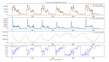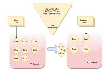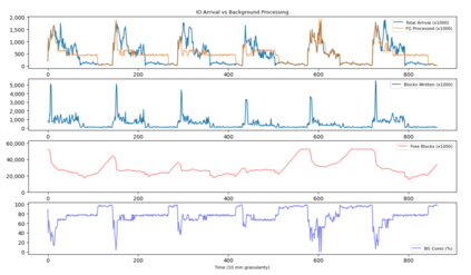 翻译:在今天的企业储存系统中,如快照删除或驱动重建等辅助数据服务,如果与重前景IO一起执行,往往导致缺失 SLO(服务级目标),往往会导致缺失 SLO(服务级目标),就会造成巨大的性能干扰。网络或VDI(虚拟桌面基础设施)等典型的储存系统应用程序遵循反复的高/低工作量模式,可以学习和预测。我们提议了一个基于优先事项的背景调度器,以学习这种重复模式,使存储系统能够保持高峰性能,进而达到服务水平目标,同时支持一些数据服务。当前地 IO 需求增强时,系统资源专门用于为前地 IO 请求和任何可推迟的背景处理提供服务,只要预测显示储量库仍有剩余能力,就记录在今后的闲置周期中处理。我们智能背景调度器采用资源隔断模型,允许地表和背景 IO 一起执行,只要前方IO 使用任何自由周期来清除背景债务。使用VDI 应用程序的痕迹,我们如何用智能背景技术超过SLO6 固定的背景,如果使用固定的背景记录,则使用静态的SLO 限制,则使用固定背景违约法。