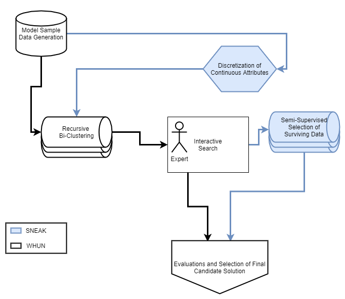 When reasoning over complex models, AI tools can generate too many solutions for humans to read and understand. In this case, \textit{interactive search-based software engineering} techniques might use human preferences to select relevant solutions (and discard the rest). Often, iSBSE methods rely on evolutionary methods that need to score thousands of mutants. Generating those scores can be overwhelming for humans or impractically slow (e.g. if some automated process required extensive CPU to computer those scores). To address that problem, this paper introduces SNEAK, a semi-supervised learner (SSL) that uses the structure of the data to label a very small number of points, then propagates those labels over its neighbors. Whereas standard SSL addresses single goal problems (classification, regression), \sffamily{SNEAK} is unique in that it can handle multi-goal problems. As shown by the experiments of this paper, SNEAK asks for very few labels (30, or even less) even for models with 1000 variables and state spaces of $2^{1000}$ possibilities. Also, the optimization solutions found in this way were within the best 1\% of the entire space of solutions. Further, due to the logarithmic nature of its search, in theory, SNEAK should scale well to very large problems. Accordingly, we recommend SNEAKing since, at the very least, it is a baseline architecture against which other iSBSE work can be compared. To enable that comparison, all of ours scripts are available at https://github.com/zxcv123456qwe/sneak.