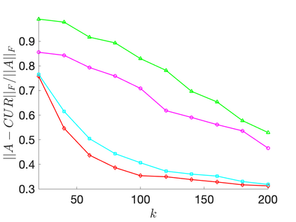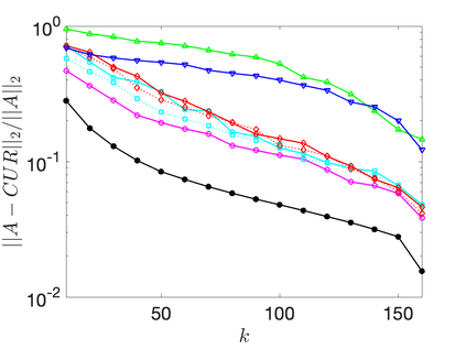 翻译:CUR 分解是一种低级近似技术,它选择某一矩阵的列和行的小子集,作为其列和行的基数。它最近吸引了很大的兴趣,因为它比基于正异性基础的传统低级分解法具有若干优势,其中包括保护诸如聚度或非饱和性、解释数据的能力和减少储存要求等属性。找到将剩余错误的规范降到最低的骨架的问题众所周知是NP硬的,但典型的节流方案,如专列的QR工作在实践上往往效果良好。当它与随机化的减少尺寸技术相结合时,基于典型的分流法方法变得特别有效,并证明能够非常迅速地计算大规模、潜在稀少、基数的CUR分解法。计算CUR脱位的另一种流行算法是随机地从全指数集中抽取柱和行,使用基于杠杆分数的专门概率分布法。这种基于取样的技术特别吸引了非常大规模的简化规模的简化技术,对于大规模简化的简化技术特别具有吸引力,而基于古典化的简化的精确性研究则则提供了一些最新的理论修正。