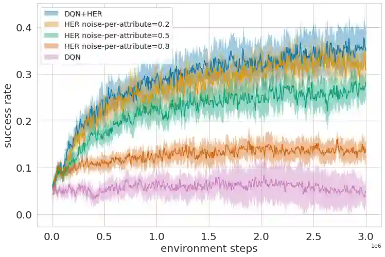 翻译:语言创造了一种对世界的缩略语,并允许通过构成性来描述无限的情况和目标。 虽然这些特征特征可以促进指导、调节或结构互动代理行为,但对于在情景之后的简单指令中正确描述语言理解和强化学习仍然是一个开放的问题。 这种共同学习问题通过专家演示、辅助损失或神经感应偏差来缓解。 在本文中,我们提议一种统称方法,称为Hindsight General for experience replay (HIGher), 将Hindsight Experience Replay (HER) 方法扩展到语言限制的政策设置。 当该代理不履行指令时, HIGher 学会发布与代理轨迹匹配的新指令, 并用正面的奖励重新标出事件。 为此, HIGher 学会使用过去成功的轨迹将状态映射成教学图, 从而不再需要外部专家干预, 来重新标出Vanilla HER 。 我们展示了我们在BeIAI环境中采用的方法的效率, 并展示它如何补充其他教学方法。
