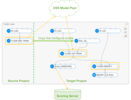 Secure online transaction is an essential task for e-commerce platforms. Alipay, one of the world's leading cashless payment platform, provides the payment service to both merchants and individual customers. The fraud detection models are built to protect the customers, but stronger demands are raised by the new scenes, which are lacking in training data and labels. The proposed model makes a difference by utilizing the data under similar old scenes and the data under a new scene is treated as the target domain to be promoted. Inspired by this real case in Alipay, we view the problem as a transfer learning problem and design a set of revise strategies to transfer the source domain models to the target domain under the framework of gradient boosting tree models. This work provides an option for the cold-starting and data-sharing problems.