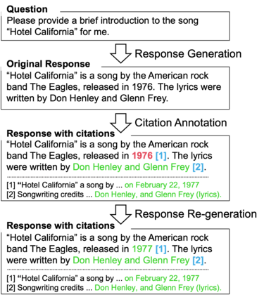 Large language models (LLMs) exhibit powerful general intelligence across diverse scenarios, including their integration into chatbots. However, a vital challenge of LLM-based chatbots is that they may produce hallucinated content in responses, which significantly limits their applicability. Various efforts have been made to alleviate hallucination, such as retrieval augmented generation and reinforcement learning with human feedback, but most of them require additional training and data annotation. In this paper, we propose a novel post-hoc Citation-Enhanced Generation (CEG) approach combined with retrieval argumentation. Unlike previous studies that focus on preventing hallucinations during generation, our method addresses this issue in a post-hoc way. It incorporates a retrieval module to search for supporting documents relevant to the generated content, and employs a natural language inference-based citation generation module. Once the statements in the generated content lack of reference, our model can regenerate responses until all statements are supported by citations. Note that our method is a training-free plug-and-play plugin that is capable of various LLMs. Experiments on various hallucination-related datasets show our framework outperforms state-of-the-art methods in both hallucination detection and response regeneration on three benchmarks. Our codes and dataset will be publicly available.