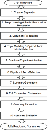Text summarization is the process of condensing a piece of text to fewer sentences, while still preserving its content. Chat transcript, in this context, is a textual copy of a digital or online conversation between a customer (caller) and agent(s). This paper presents an indigenously (locally) developed hybrid method that first combines extractive and abstractive summarization techniques in compressing ill-punctuated or un-punctuated chat transcripts to produce more readable punctuated summaries and then optimizes the overall quality of summarization through reinforcement learning. Extensive testing, evaluations, comparisons, and validation have demonstrated the efficacy of this approach for large-scale deployment of chat transcript summarization, in the absence of manually generated reference (annotated) summaries.