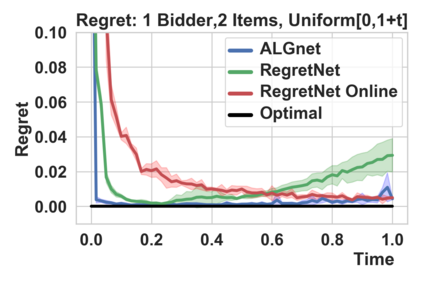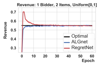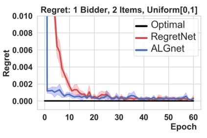 翻译:在拍卖设计中,设计一个奖励性兼容的拍卖,最大限度地增加预期收入是一个中心问题。虽然对这个问题的理论方法已经达到一定的限度,但Diutting等人(2019年)最近发起的研究方向是建立神经网络结构以寻找最佳拍卖。我们提出了两个与其方法的概念不同之处,从而导致提高绩效。首先,我们利用理论拍卖设计的最新结果(Rubinstein和Weinberg,2018年)引入一个具有时间独立性的拉格朗吉亚。这不仅绕过了昂贵的超参数搜索(如先前工作那样)的需要,而且还提供了一种原则性指标,用以比较两次拍卖的绩效(与以往工作相同)。第二,以往工作中的优化程序使用了内部最大化循环来计算最佳错误报告。我们通过引入额外的神经网络来重新组合这一过程。我们通过学习竞争性或严格改进拍卖与先前工作相比的方法证明了我们的方法的有效性。这两种结果都进一步暗示了将“Avoction Dign”作为一种与固定效用功能的两边游戏的新构思。