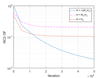 翻译:为分类任务培训深神经网络的现代战略包括优化网络的重量,即使培训错误消失后网络的重量,以将培训损失进一步推向零。最近,在这一培训过程中,从经验中观察到了一个名为“神经崩溃”的现象。具体地说,已经表明,本类样本的学习特点(倒数第二层的产出)与其平均值一致,不同类别的方法也表现出某种紧凑的框架结构,这也与最后一层的重量相一致。最近的文件表明,在优化一个简化的“不受限制特征模型”(UFM)时,这一结构的最小化作用会显现出来,该模型具有常规化的跨热带损失。在本文件中,我们进一步分析并扩展了UFMM。首先,我们研究固定化的 MSE损失的UM特性(倒数倒数倒数倒数第二层的产出),并表明,最小化器的特性比跨层的重量结构要好一些。然后,我们通过增加另一层的重量和RELU的非线性能到模型中去,然后我们用NCFM的模型展示了我们以往的实用性能模型。