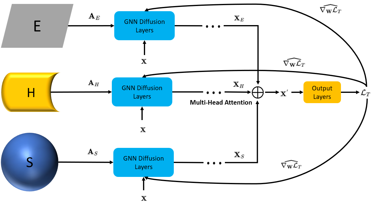 In real-world scenarios, although data entities may possess inherent relationships, the specific graph illustrating their connections might not be directly accessible. Latent graph inference addresses this issue by enabling Graph Neural Networks (GNNs) to operate on point cloud data, dynamically learning the necessary graph structure. These graphs are often derived from a latent embedding space, which can be modeled using Euclidean, hyperbolic, spherical, or product spaces. However, currently, there is no principled differentiable method for determining the optimal embedding space. In this work, we introduce the Attentional Multi-Embedding Selection (AMES) framework, a differentiable method for selecting the best embedding space for latent graph inference through backpropagation, considering a downstream task. Our framework consistently achieves comparable or superior results compared to previous methods for latent graph inference across five benchmark datasets. Importantly, our approach eliminates the need for conducting multiple experiments to identify the optimal embedding space. Furthermore, we explore interpretability techniques that track the gradient contributions of different latent graphs, shedding light on how our attention-based, fully differentiable approach learns to choose the appropriate latent space. In line with previous works, our experiments emphasize the advantages of hyperbolic spaces in enhancing performance. More importantly, our interpretability framework provides a general approach for quantitatively comparing embedding spaces across different tasks based on their contributions, a dimension that has been overlooked in previous literature on latent graph inference.