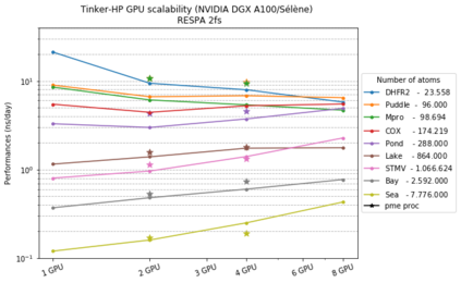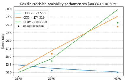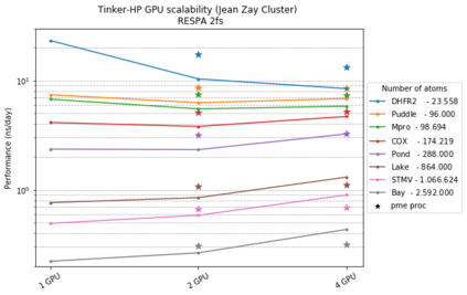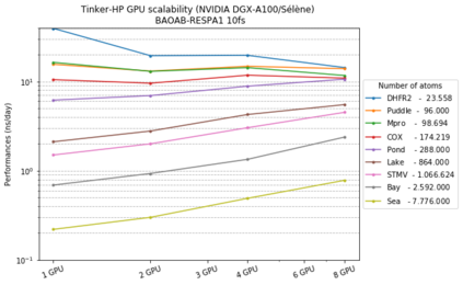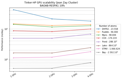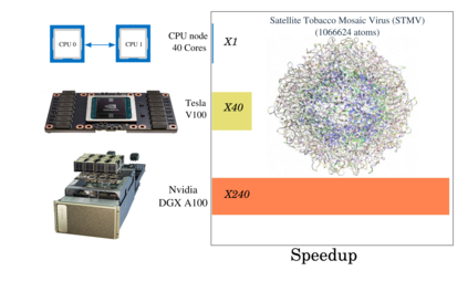翻译:我们展示了Tinker-HP软件包(Lagard ⁇ ere等人,Chem.Sci.,2018,9,956-972)的扩展,将Tinker-HP软件包(Lagard ⁇ ere等人,Chem.Sci.,2018,9,956-972)推广至图形处理股(GPU)卡的使用,以使用极分多体力场加速分子动态模拟。新的高性能模块允许高效使用从研究实验室到现代超级计算机中心的单一和多个GPUPS结构。在详细分析了我们依靠OpenACC和CUDA的可扩缩战略后,我们讨论了该软件的各种能力。其中讨论了该代码的多重精确可能性。如果提供高效的双精度实施,以保存快速参考计算的可能性。我们更精确的计算方法为分子动态提供了相似的精度,同时展示优性能。由于Tinker-HPHP,我们的研究重点是利用新的生成点调调调调极分数, 我们的研究重点是AMOIDIA模型模型模型应用各种包括2080T、3090、V100和A100级的高级模拟模型的模型的高级智能数据流流流流化的快速化的高级性能,我们使用Mexalalal-dealalalalalalalalalalal-deal-deal-deal-deal-deal-deal-deal-deal-deal-dealmamaxxxxxxx,我们提供了在新数到百万个的高级的高级的高级智能的高级的高级的高级的高级的高级的高级的高级的模型。