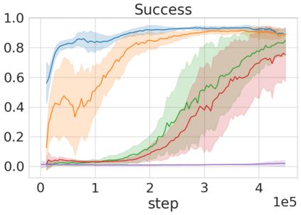 翻译:在许多现实世界环境中, 机器人能够在其抓取器和触觉感应器中获得强力/感应器, 而触觉感应器在涉及接触丰富的运动的任务中往往是必要的。 在这项工作中, 我们利用触摸反馈不匹配的惊喜来引导在硬性微分奖励强化学习任务中的探索。 我们的方法, 触摸基础的好奇心( ToC), 了解什么可见的物体相互作用应该像“ 感觉” 一样。 我们鼓励通过奖励期望和经验不匹配的相互作用来探索。 在我们提议的方法中, 初始任务独立的探索阶段之后, 是一个在任务上学习阶段, 最初的相互作用会与任务上的报酬重新贴上标签。 我们测试我们的方法是一系列触摸密集的机器人手臂任务( 例如, 推动物体, 开启门 ), 我们也在这项工作中释放了这些任务。 在模拟环境中的多重实验中, 我们证明我们的方法能够通过微薄的奖励和好奇心来学习这些困难的任务。 我们比较我们的跨模式方法, 将我们的方法与单一模式( 微或视觉的) 方法比得更高效的方法。