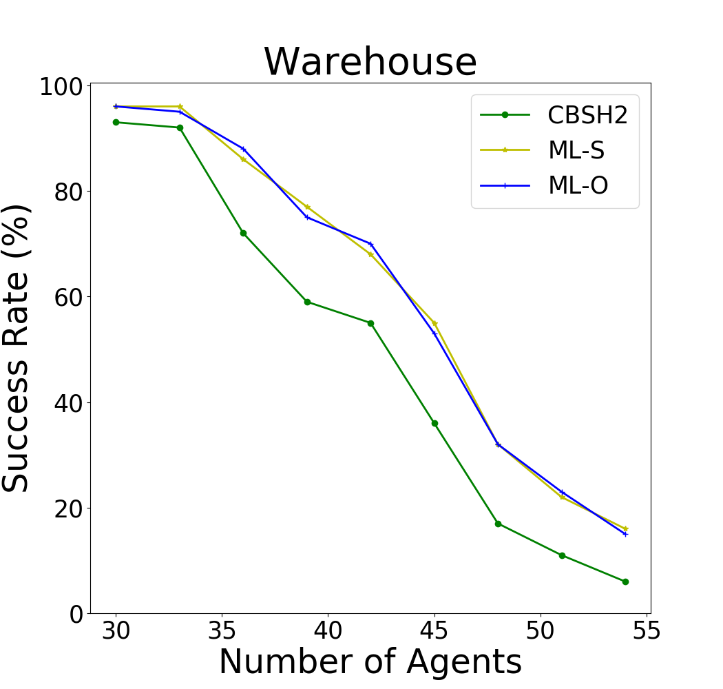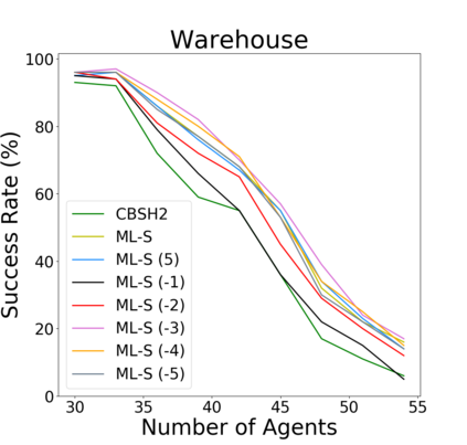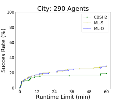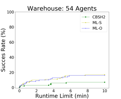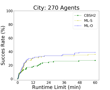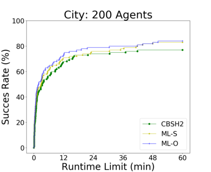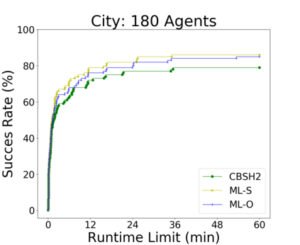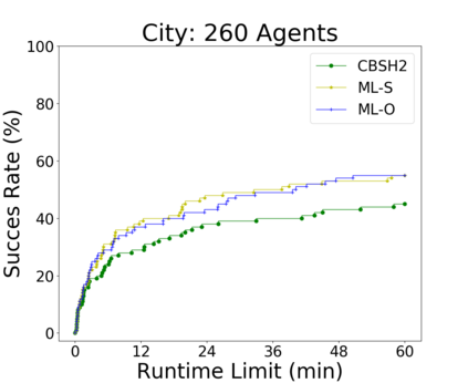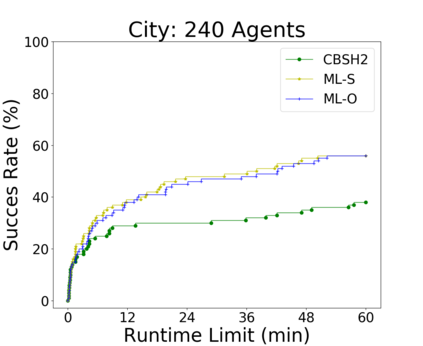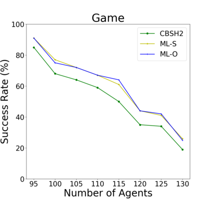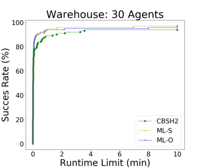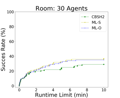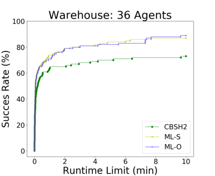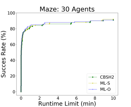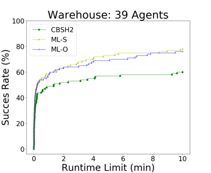 翻译:基于冲突的搜索(CBS) 是用于多试剂路径发现的最先进的算法。 在高级一级, CBS 反复检测冲突,并通过将当前问题分为两个子问题来解决其中之一。 先前的工作选择冲突, 将冲突分为三个类别, 并总是从最优先的类别中选择冲突。 在此工作中, 我们为冲突选择建议了一个标志, 导致搜索树小于先前工作所使用的。 然而, 甲骨文的计算很慢。 因此, 我们提出一个冲突选择的机器学习框架, 以观察甲骨文做出的决定, 并学习以直线排序函数代表的冲突选择战略, 准确和迅速地模仿甲骨文做出的决定。 对基准地图的实验表明, 我们的方法极大地提高了成功率、 搜索树大小和 运行时间, 超过当前最先进的 CBS 解答器 。