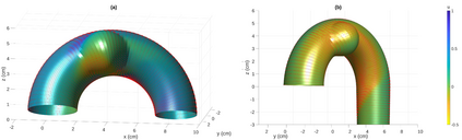 翻译:该模型由一套平衡法体系组成,用于保护质量,平衡轴向和角方向的势头。这些方程式是通过对狭窄、大型船只的压抑性纳维埃-斯托克斯方程式进行无症状分析,并在每一横截面的射线方向进行整合而得出的。对该系统的主要特性进行了讨论,并提出了一种相对性 -- -- 保留良好平衡的中上风方案。该方法的优点将在各种情景中进行测试。特别是,展示了使用理想化动脉模型进行模拟的数值结果。我们分析了血液流动在不同初始条件下的时间演变,例如,在轮廓的扰动到稳定状态时,形成船只壁上的挤动。我们考虑了不同情况,因为船只弹性的变化不同。